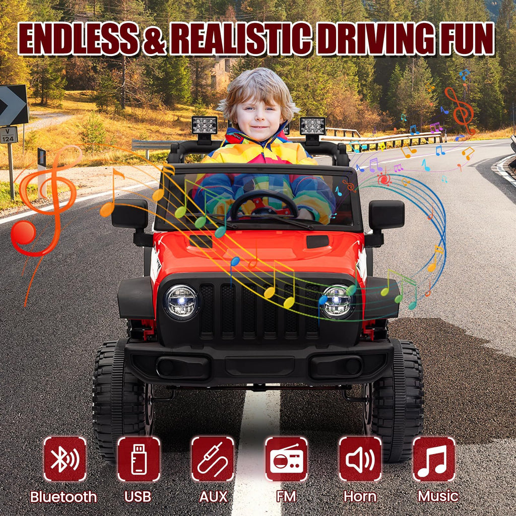 Imagine your child’s delight as they connect their favorite tunes via Bluetooth or USB to the built-in speaker system, filling the air with music that fuels their imagination. Whether they’re blasting their favorite songs or listening to fun sound effects, this ride-on truck turns every ride into a mini party.