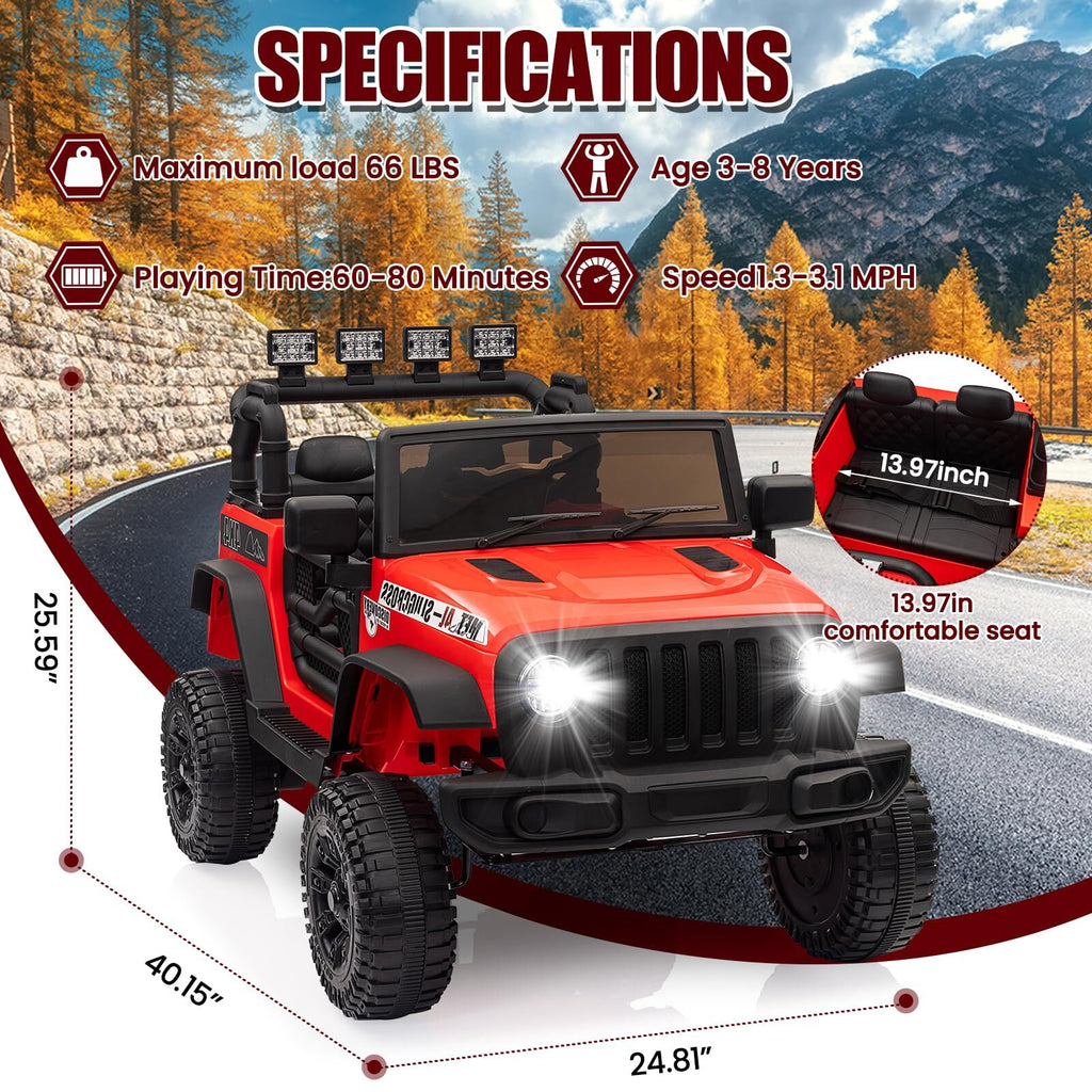 The vibrant LED headlights don’t just look cool—they brighten the path ahead for added realism and safety during dusk or in shaded areas. Lockable doors and an off-road-style windshield complete the authentic truck look, making every ride feel like a real expedition.