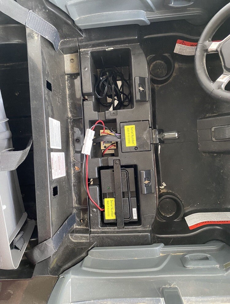 - Electric ride-on truck powered by a rechargeable battery