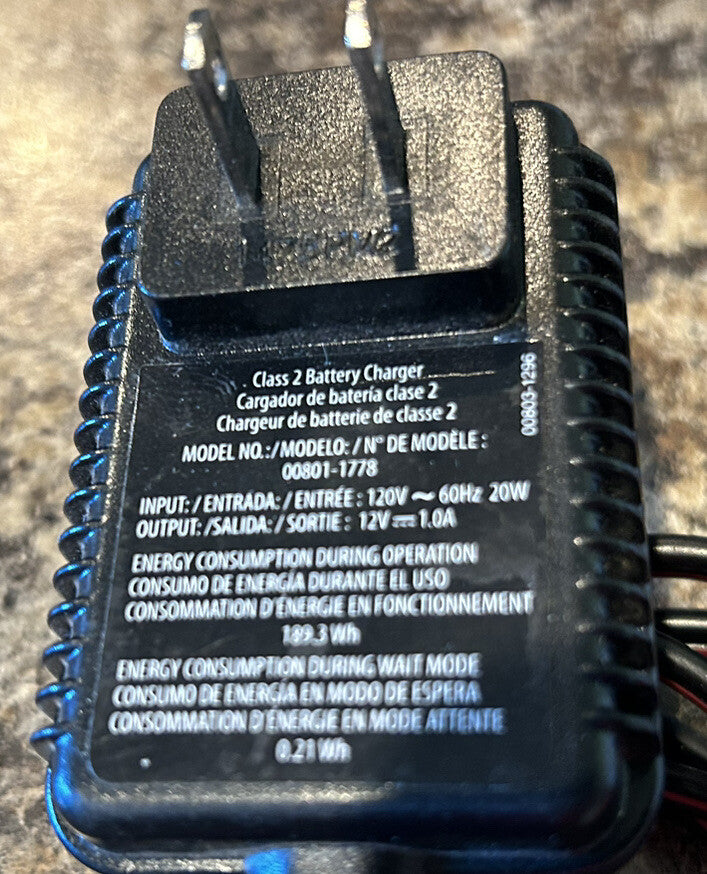 - Battery: 12 volts (rechargeable lead-acid battery included)