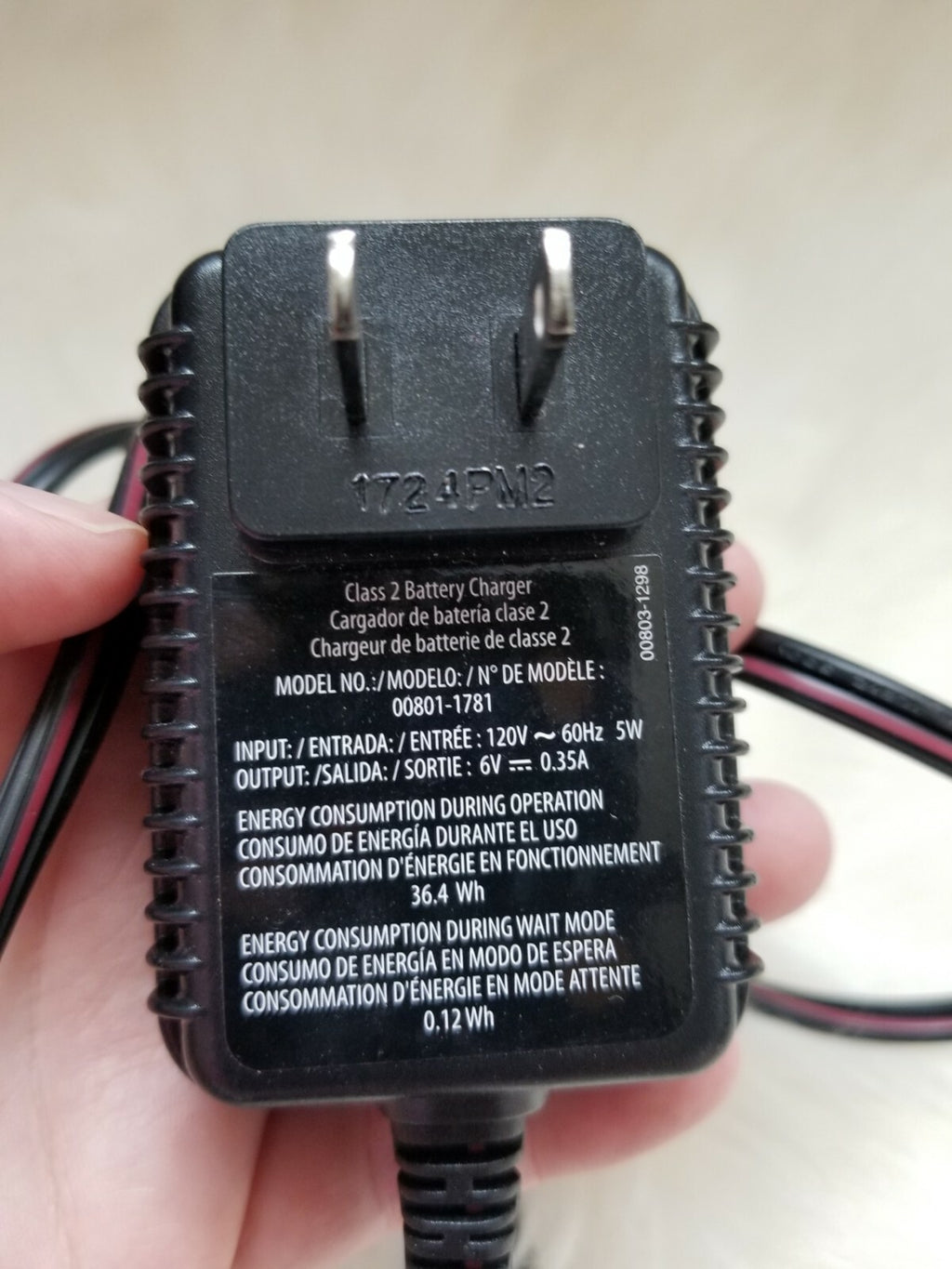 - Model: 00801-1781, the original Fisher-Price Power Wheels charger for 6V ride-on vehicles