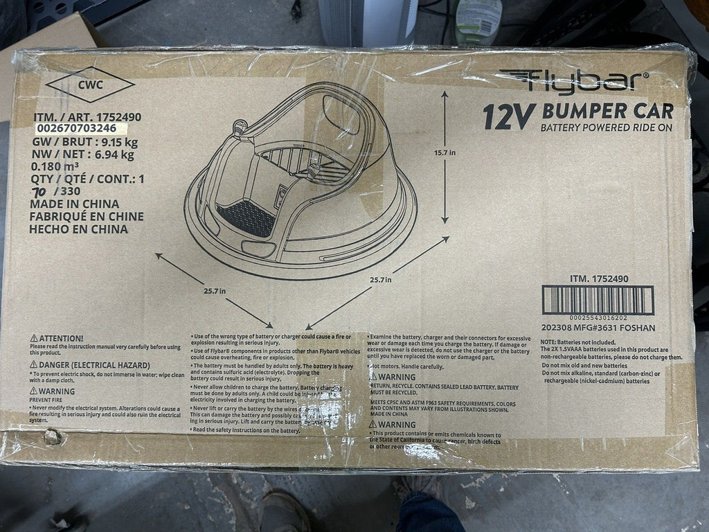 Get ready to light up playtime and give your little adventurer an unforgettable ride-on experience. The Flybar 12V Bumper Car is the ultimate indoor thrill machine designed for children ages 1½ to 4. Packed with fun features, this battery-powered car delivers safe, screen-free excitement as your child zips, spins, and bumps around the house. With colorful LED lights, smooth 360° turns, and a cushioned rubber bumper, it’s the perfect gift for any occasion—minus the remote control, which is not included.