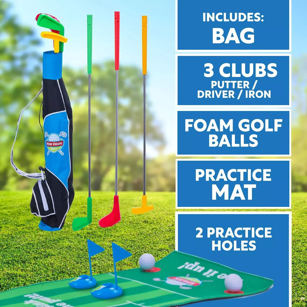 - Set of kid-sized clubs and soft practice balls to build swing skills