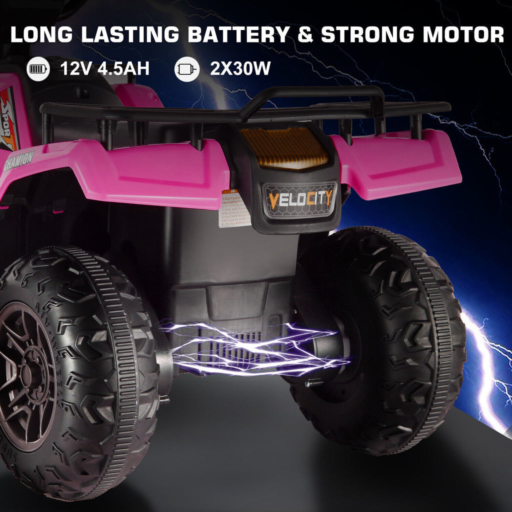 - Powerful Motor and Long Playtime: Equipped with twin 30W motors and a 12V 4.5Ah battery, this ATV delivers speeds up to 2.5 mph and up to an hour of fun on a single charge.