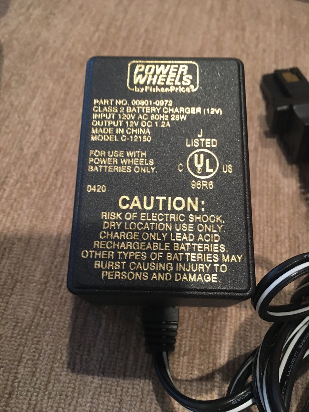- Type: Genuine Fisher Price Power Wheels Battery Charger