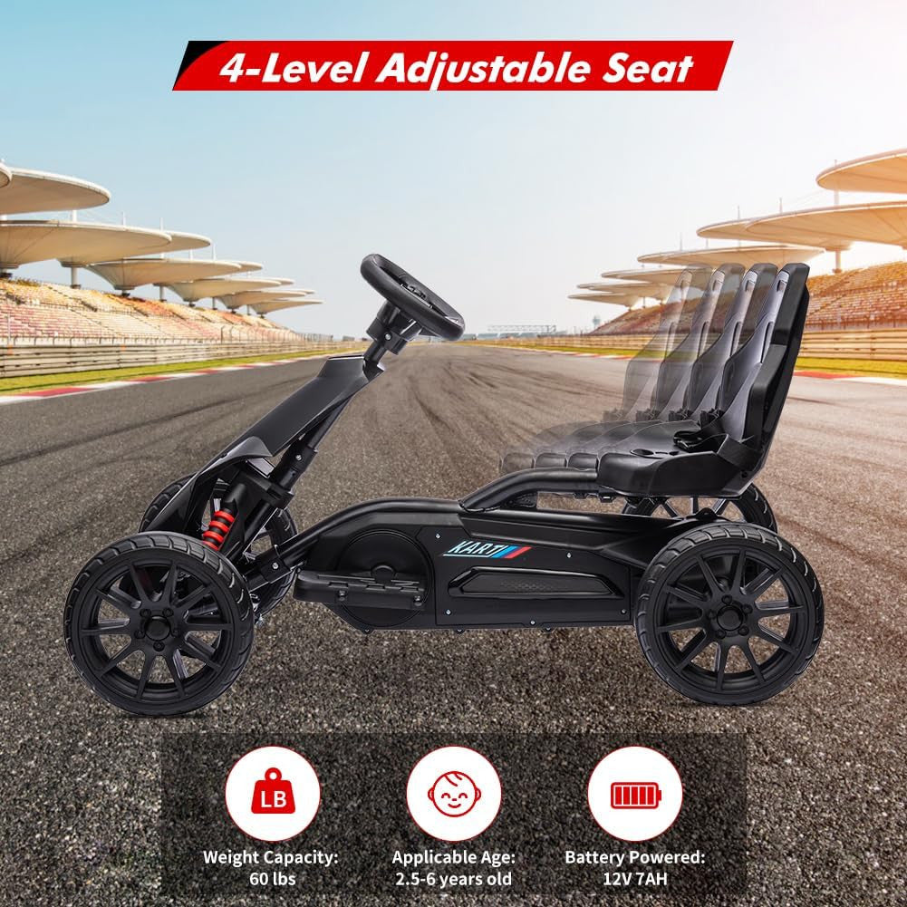 Whether your child is a budding speed enthusiast or just starting to explore the joy of ride-on vehicles, this electric go kart offers adjustable speeds and a customizable seating size to perfectly match their age and size. With smooth pedal control and a responsive steering wheel, every drive becomes a new journey filled with laughter and fun.