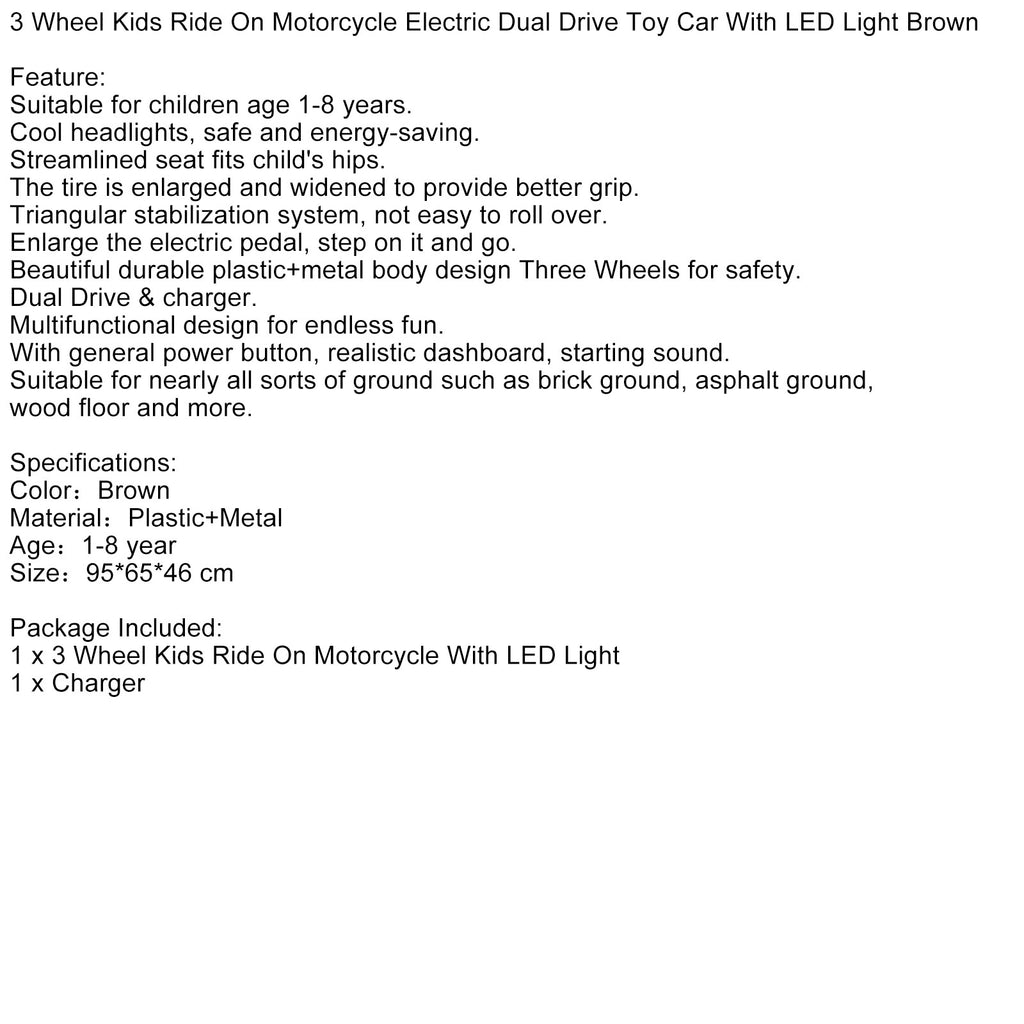 - 1 × Brown 3-Wheel Ride-On Motorcycle with LED Light