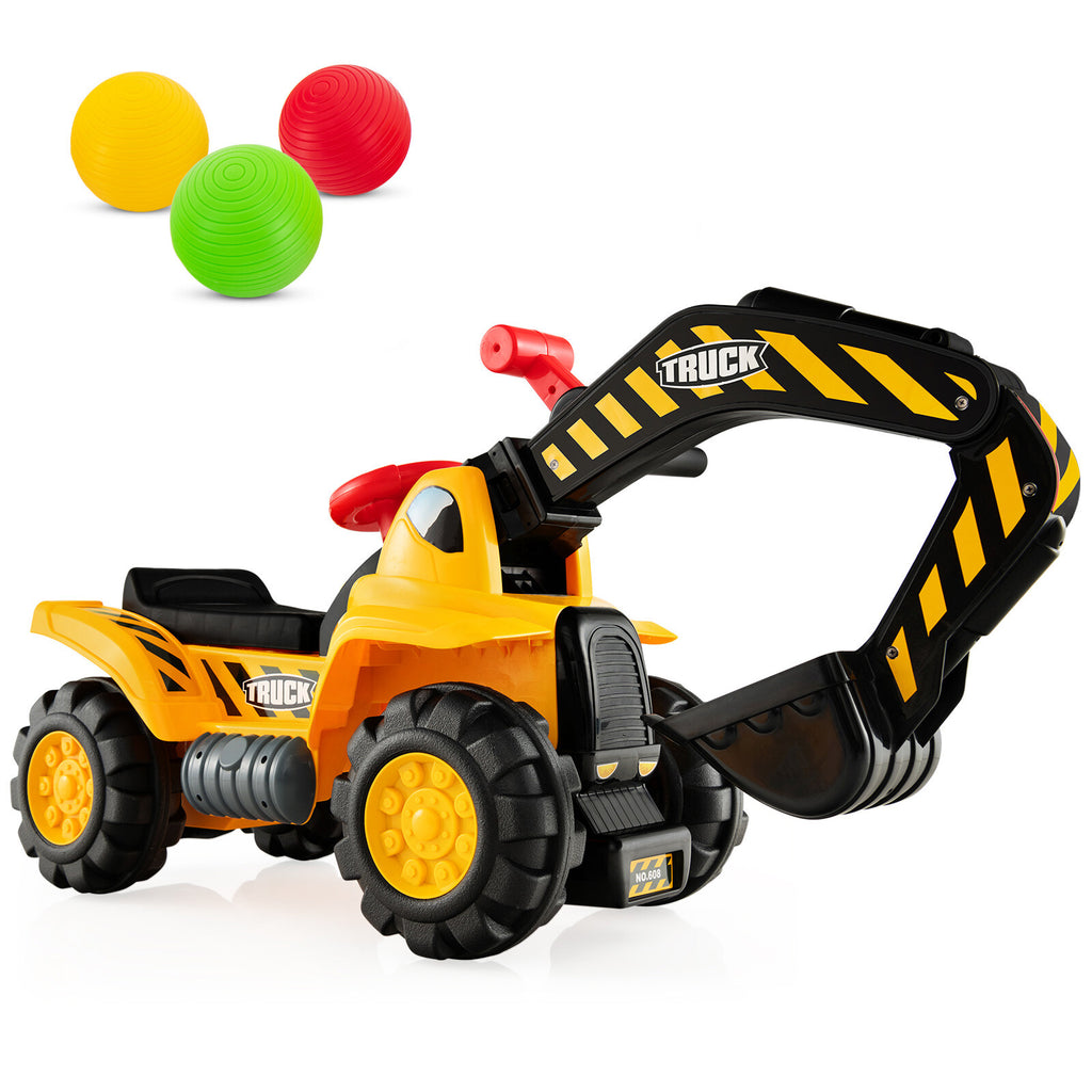 - Folding Basketball Hoop & Balls: With the included hoop and three soft balls, your child can pause their construction mission to shoot some hoops, making this ride-on digger a multi-activity play center.