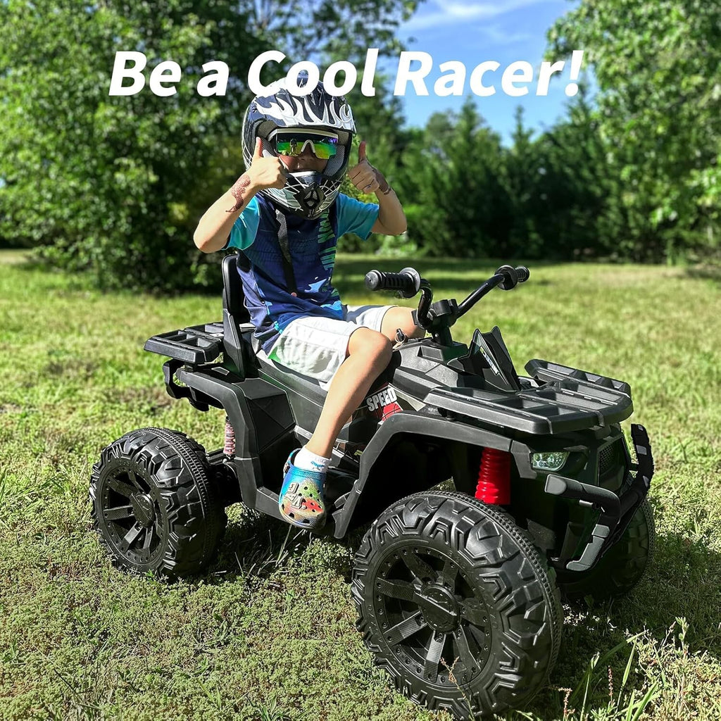 - Realistic ATV Styling – Crafted to look like the real deal, this ride-on four wheeler sports a rugged off-road aesthetic with bold fenders, aggressive front grill accents, and a sturdy frame. Whether cruising down the sidewalk or zooming across the yard, your child will feel like a pro driver behind the wheel of a true all-terrain vehicle.