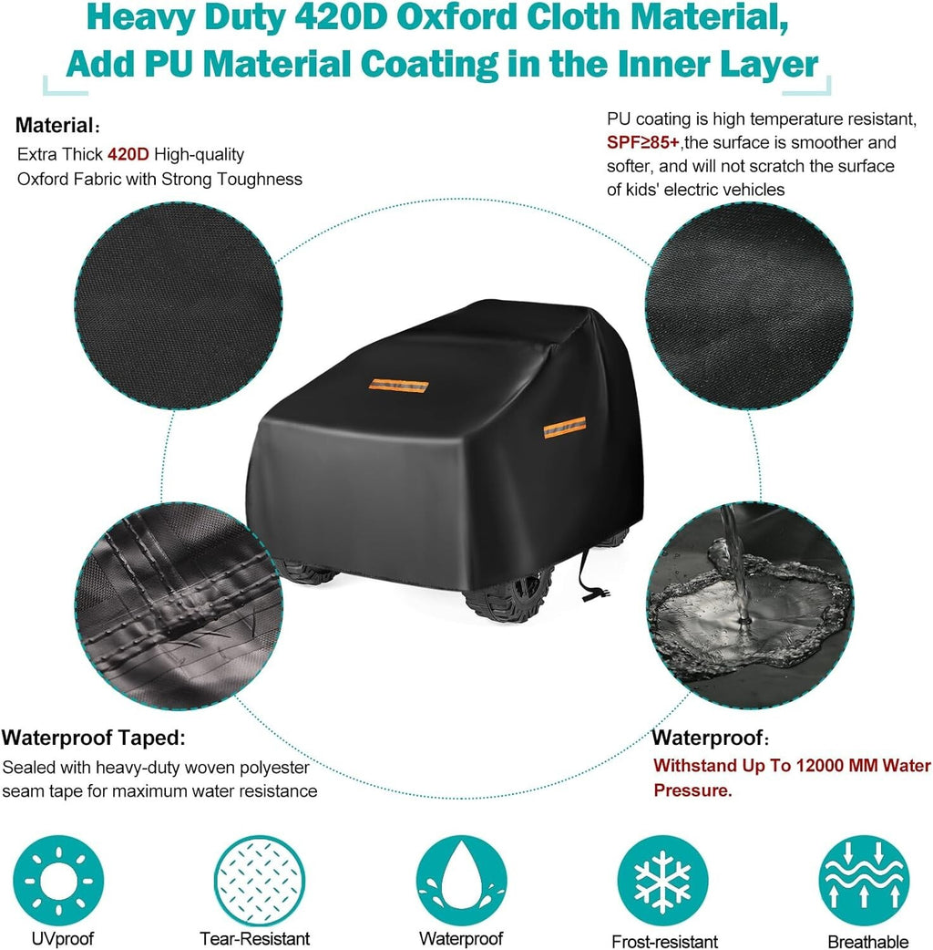 - Extra-Thick 420D Oxford Fabric: The patented triple-layer construction combines a nano-material inner coating with a smooth, soft lining that won’t scratch your ride-on truck’s finish. Withstands up to 8,000 mm of water pressure—so even the heaviest downpour rolls right off.