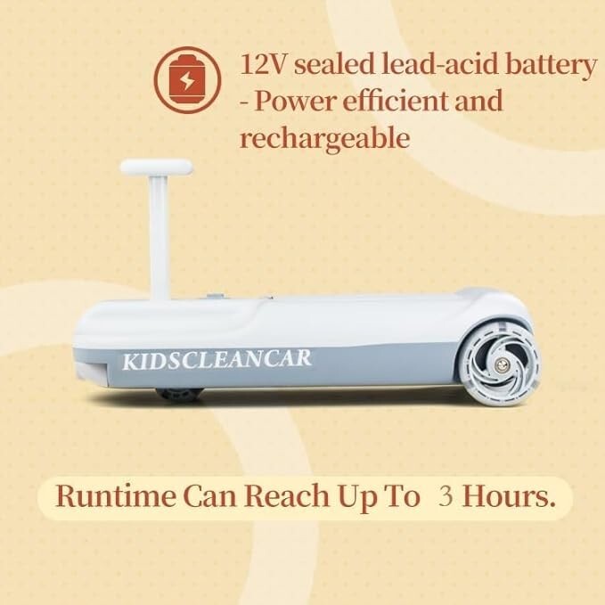 Forget the hassle of constant recharging – the KidsCleanCar boasts a battery life of up to 3 hours on a full charge. This generous playtime means your child can embark on multiple cleaning escapades or speedy adventures without interruption, keeping their enthusiasm alive and parents free from frequent recharges.