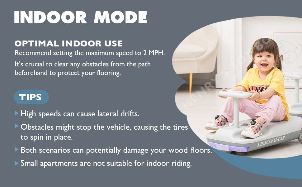 Whether your child is a cautious beginner or an aspiring speedster, the KidsCleanCar adapts to their comfort level with an adjustable speed setting ranging from a gentle 0.6 mph to a thrilling 5 mph. This spectrum of speed ensures your child can develop confidence and control at their own pace, making every ride enjoyable and safe.