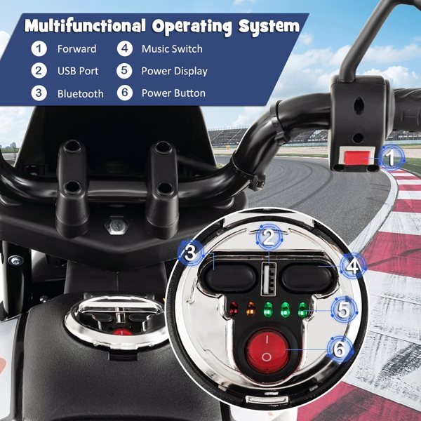 This isn’t just any ride-on — it’s a multimedia experience. Equipped with a headlight to light up the path ahead, your child will feel like a real road warrior as they ride day or night. The built-in music system includes a USB port and Bluetooth connectivity, allowing you or your child to stream favorite tunes or MP3s directly to the motorcycle. This audio feature transforms every ride into a fun-filled party, making playtime even more engaging and entertaining.