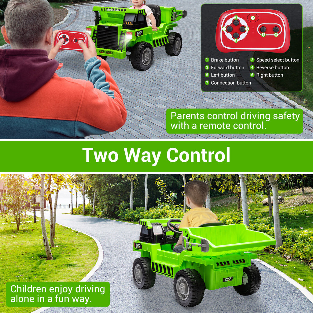 What truly sets this kids ride-on dump truck apart is its dazzling array of features that bring the construction experience to life. The centerpiece is the electric working dump bed, which allows your child to load and unload their “building materials” just like the pros. This dynamic, functioning bed adds an interactive element that sparks endless imaginative scenarios—whether hauling dirt, rocks, or toys, your child gets to play the role of a hardworking construction operator.