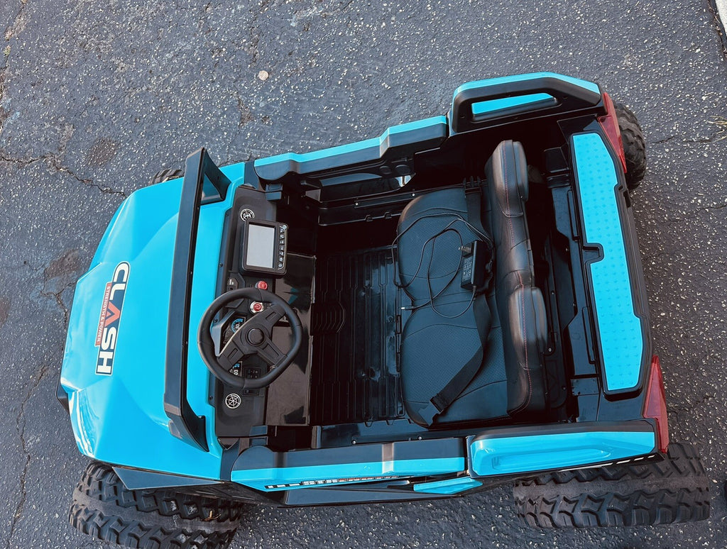 Imagine the gleam of the sun reflecting off a vibrant aqua blue ride-on buggy as your little explorer revs the 24V motor and charges down a winding path of imagination and fun. The Clash Buggy is not just a toy—it’s a gateway to thrilling journeys, backyard expeditions, and unforgettable moments of joy. Designed for kids ages 1 to 10, this oversized UTV-style ride-on delivers an authentic four-wheel-drive feel, sturdy construction, and premium comfort. Whether you’re gifting a future off-road enthusiast or simply fueling playtime with a dash of excitement, this epic buggy will have your child grinning from ear to ear.