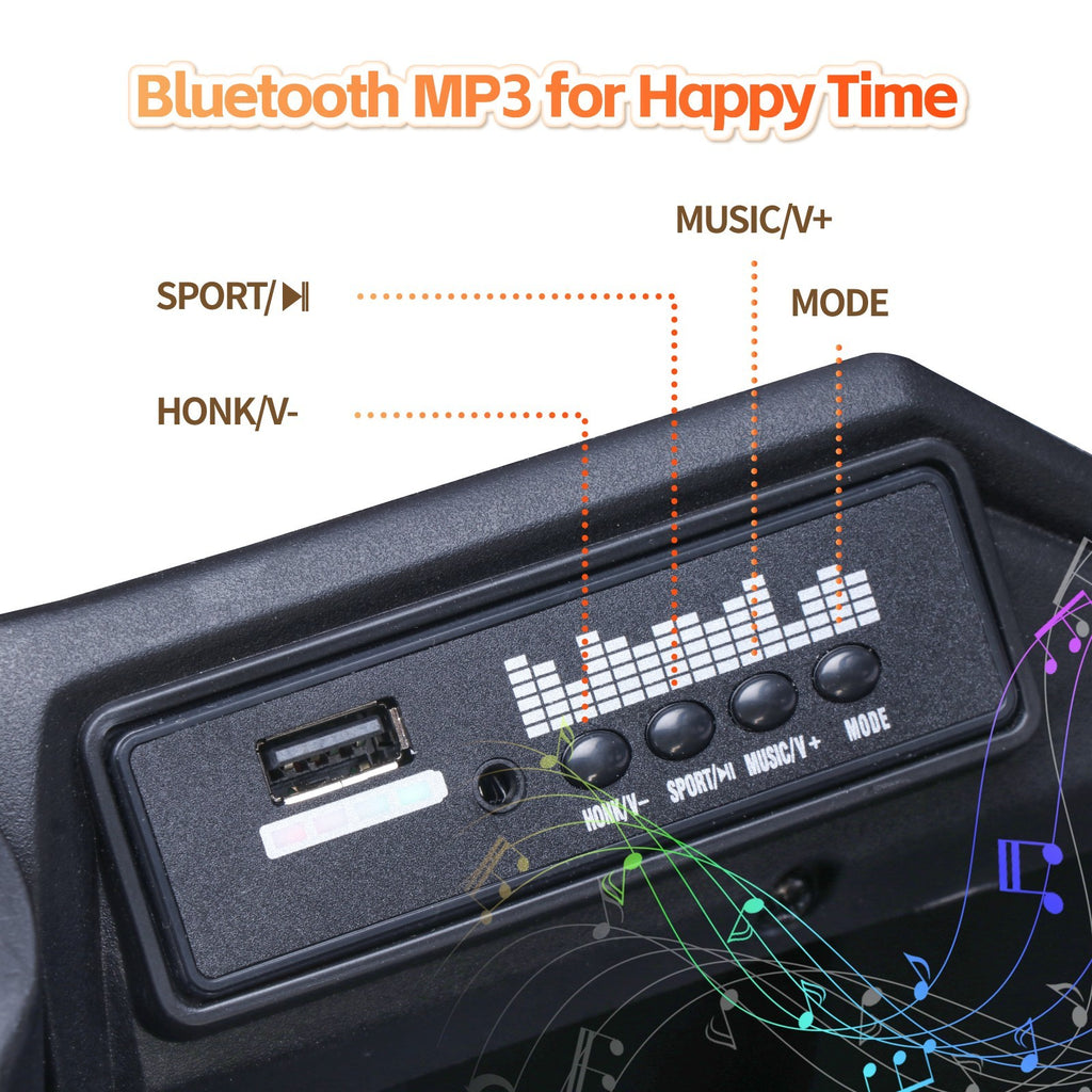 - Media Connectivity: Built-in Bluetooth, MP3, and USB ports let you load up favorite playlists or audiobooks. Kids can press play on their personal soundtrack as they zip around on their ride-on vehicle.