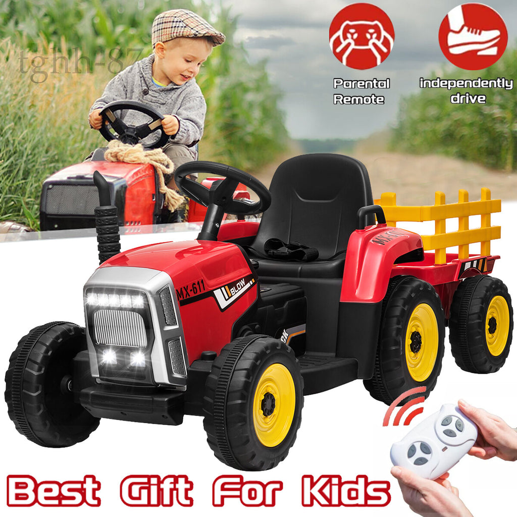 12V Battery-Powered Kids Electric Ride-On Tractor with Trailer and Remote Control Toy Car