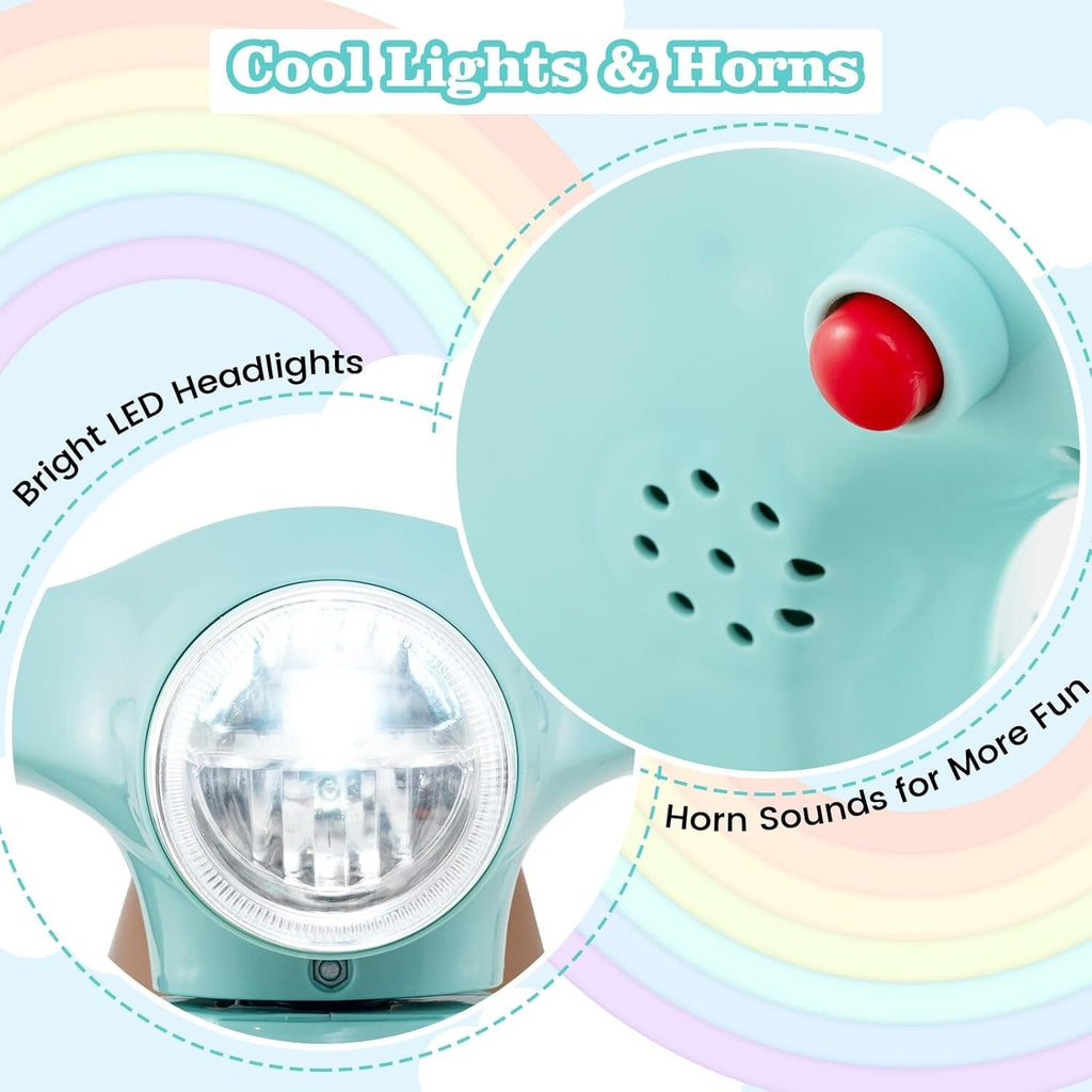 From the moment your little one sets eyes on this dazzling kids’ motorcycle, their excitement will soar. Crafted with lively colors and equipped with bright LED headlights, this ride-on motorcycle mimics the look and feel of a real Vespa, instantly capturing your child’s attention and sparking imaginative play. The authentic horn sounds add that final touch of realism, encouraging interactive fun that stimulates auditory senses and social play. Imagine your child confidently cruising around, feeling the thrill of the open road—all in the safety of your home or backyard.
