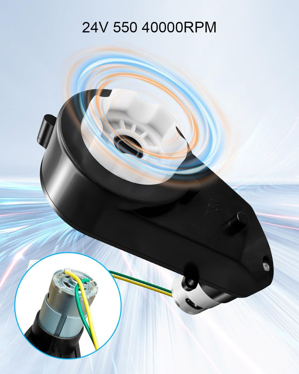 - Custom High-Speed Performance: Featuring a 24V 550 motor spinning at an astonishing 40,000 RPM, this gearbox offers rapid power output that propels your child’s ride-on car forward with impressive acceleration. This means your little one can experience the exhilaration of quick starts and nimble maneuvers, making every ride a pulse-raising adventure.