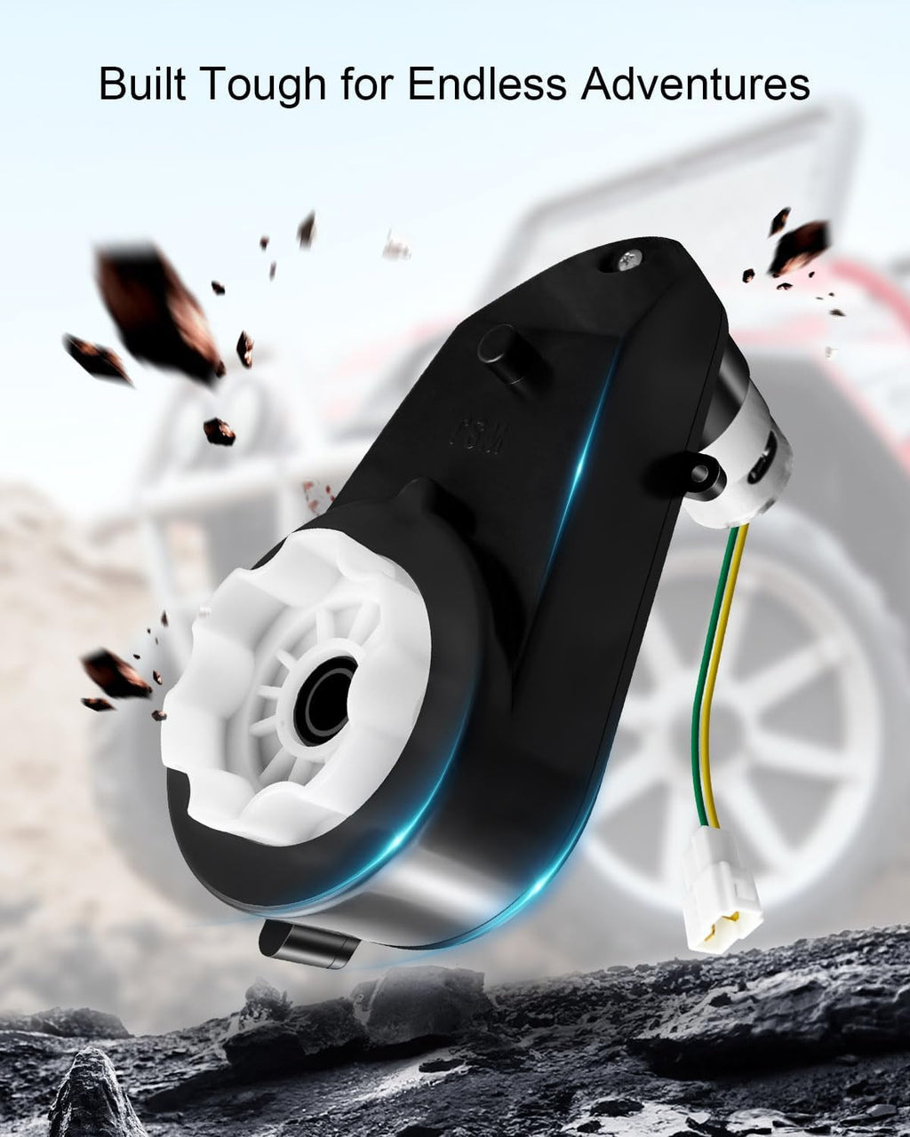 With this gearbox installed, you’re not just upgrading a component; you’re fueling your child’s imagination and adventure spirit. Every ride becomes an exhilarating journey, where speed meets safety and durability meets convenience. It’s the perfect upgrade to keep the ride-on car or truck roaring with life, ensuring your young driver’s smiles never fade.