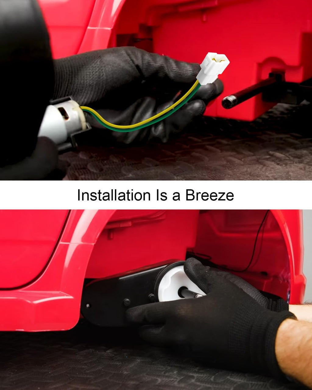 - Effortless Installation with Quick Wire Connector: Say goodbye to complicated setups or messy welding jobs. The gearbox features a convenient quick wire connector system that allows you to install or remove it with ease. This means less hassle for parents and more reliable performance for your child’s ride-on car.