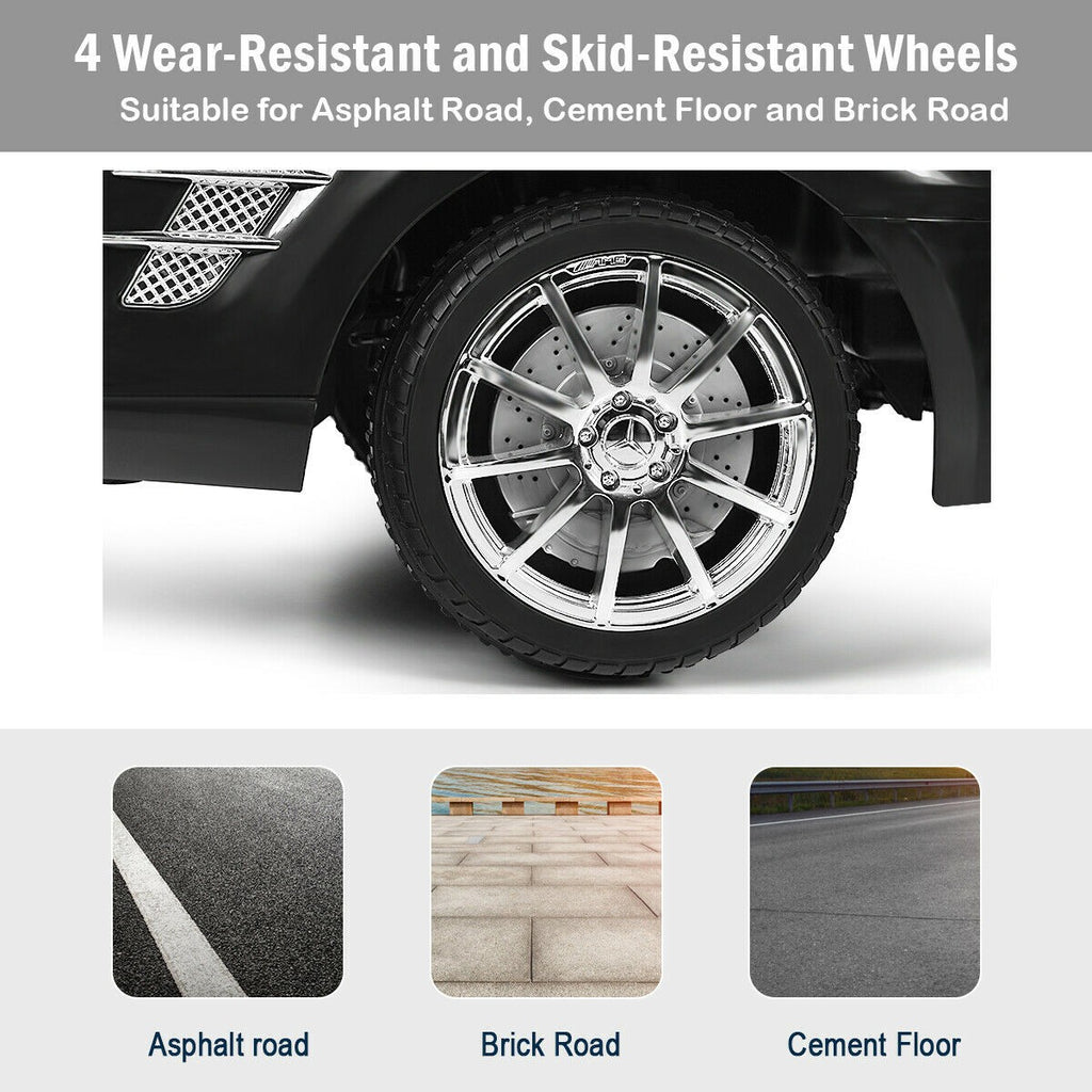 As your child steps into this mini Mercedes-Benz SLS, they’re not just sitting in a ride-on; they’re stepping into a world of adventure. Picture them embarking on imaginary road trips, navigating creative obstacle courses, or simply enjoying a leisurely spin around the driveway. The sturdy plastic design holds up to enthusiastic play, while the smooth wheels and reliable motor deliver a seamless driving feel. And because the ride-on car reaches just under 2 miles per hour, parents can relax knowing the speed remains perfectly safe for little ones.