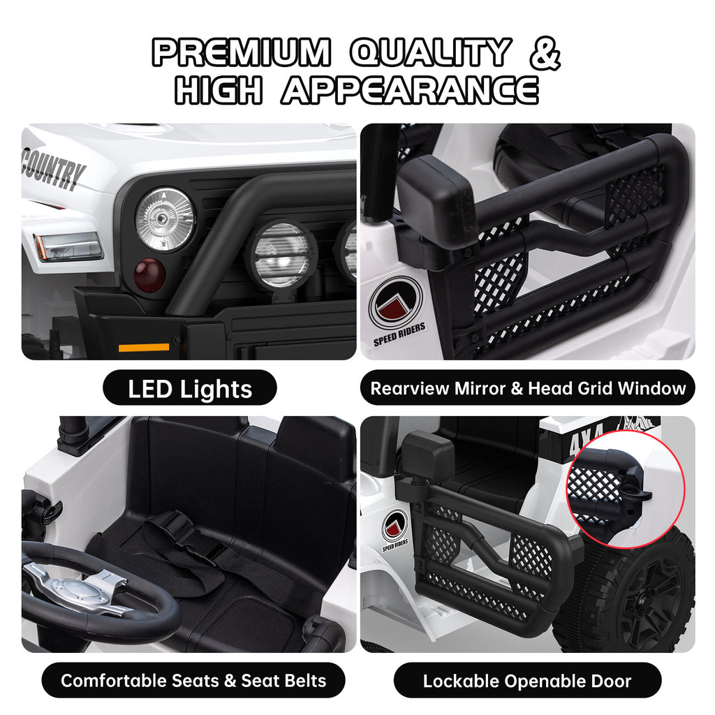 - Realistic Design: Includes lockable doors and mesh windshield for an authentic SUV driving experience.