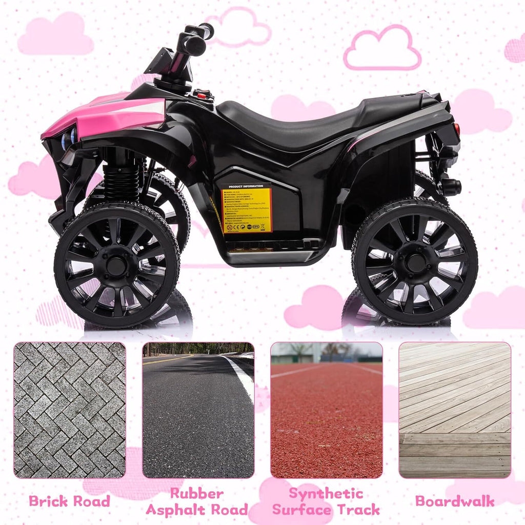 Unleash Big Adventures with the 6V Kids Ride-On ATV Get ready to watch your little explorer’s eyes light up as they grip the handlebars of this rugged ride-on ATV! Designed for budding adventurers aged 2 to 5, this four-wheeled electric vehicle combines safety, style, and endless fun in one cool package. Made of tough, impact-resistant polypropylene, this ride-on is built to survive the wildest backyard expeditions and park playdates. Whether you call it a ride-on car or a mini electric truck, your child will feel like a true off-road hero as they whiz around at a gentle pace of up to 1.8 miles per hour. An Easy Start for Tiny Hands We know how important it is to keep things simple for little riders just learning to drive. That’s why this ride-on ATV features a one-button start system paired with an intuitive forward/stop/reverse switch. With a quick press, your child engages the rechargeable 6V battery, powers on the LED headlight, and off they go! The large foot pedal lets them control speed with their own two feet, promoting coordination and fine motor skills. No confusing levers, no complicated steps—just pure, hands-on driving thrill. Built-In Music & LED Headlight for Extra Fun Turn playtime into a full sensory adventure with built-in tunes that spark excitement and boost confidence as your child enjoys every twist and turn. When you flip the power switch, the bright LED headlight illuminates the way, extending playtime into the early evening hours and ensuring safe rides through dimly lit spaces. Whether they’re pretending to be a desert racer or a rescue truck driver, these features keep the party rolling. Key Specifications: Material: Durable, ASTM-certified polypropylene shell for impact resistance and easy cleaning. Battery: Rechargeable 6V 4.5Ah lead-acid battery with simple charger included. Speed: Gentle top speed of 1.8 MPH—perfect for toddlers building confidence behind the wheel. Weight Capacity: Safely supports up to 55 lbs, accommodating children as they grow. Controls: One-button start, forward/stop/reverse switch, and foot pedal acceleration. Lighting & Sound: Bright LED headlight and built-in music for immersive ride-on experiences. Wheels: Sturdy, wear-resistant plastic tires that tackle driveways, sidewalks, grass, and packed dirt. Why You’ll Love It Imagine your child’s delighted squeals the first time they pilot their very own ride-on car. You’ll see their confidence skyrocket as they master steering, accelerating, and reversing—all under your watchful eye. The sturdy PP chassis and low center of gravity minimize tipping, while the simple controls let parents relax and enjoy the moment. Whether it’s a gift for holidays, birthdays, or just because, this ride-on ATV promises hours of active outdoor play that helps develop coordination, balance, and social skills when friends join in. Perfect for Every Terrain Grass, gravel, smooth pavement, or packed earth—this mini electric truck handles it all. Thanks to its durable, high-traction tires and robust construction, your child can explore the entire backyard without getting stuck. Watch as they zoom across lawns during family barbecues or carve imaginary trails in the driveway. Their creative storytelling will flourish as they become desert racers, mountain climbers, or emergency responders in their very own four-wheeler. Safe, Reliable & Ready to Roll Safety is our top priority. That’s why this ride-on ATV is ASTM certified and designed with rounded edges, a low seat height, and a stable wheelbase. The automatic shutoff protects the battery when it runs low, and the gentle start acceleration prevents any sudden jerks. Plus, the compact size means parents can easily reach the foot pedal area if they need to guide or stop the vehicle quickly. You can rest easy while your little one enjoys their newfound freedom behind the wheel. How to Get Started Unbox the ride-on and install the battery in minutes—no tools required. Charge the 6V battery fully before the first ride (usually 8–12 hours). Show your rider how to press the start button and step on the foot pedal. Encourage them as they steer around cones or family members—cheers and high-fives optional but highly recommended! Build Memories That Last This ride-on ATV isn’t just a toy; it’s a stage for countless stories waiting to be written. From racing friends down the driveway to exploring backyard “jungles” and creating obstacle courses, every ride becomes an epic adventure. You’ll treasure the photos of laughter-filled moments and witness the growth in your child’s independence. And when they outgrow the 55-pound weight limit, you’ll have a treasure trove of memories of their very first driving experiences. The Ultimate Gift for Young Explorers Whether you’re shopping for a curious toddler or a passionate preschooler, this ride-on ATV checks all the boxes: safety, durability, excitement, and ease of use. It’s the kind of gift that keeps on giving, turning every afternoon into an off-road expedition or a high-speed race. Place your order today and prepare to hand the keys of adventure to your favorite little driver!