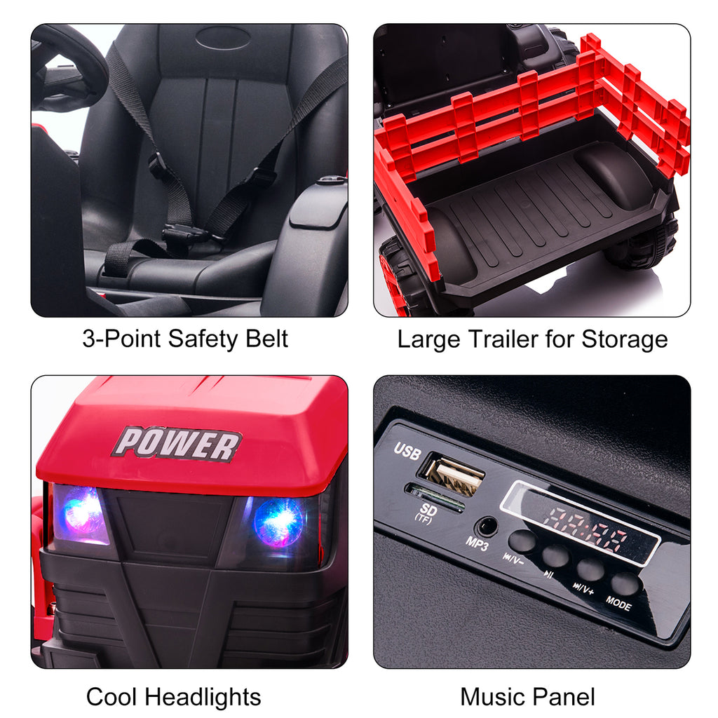 - Interactive Control Console: Loaded with fun, including horn, music player, LED headlights, and slots for MP3, USB, and TF cards so kids can enjoy their favorite tunes while driving.