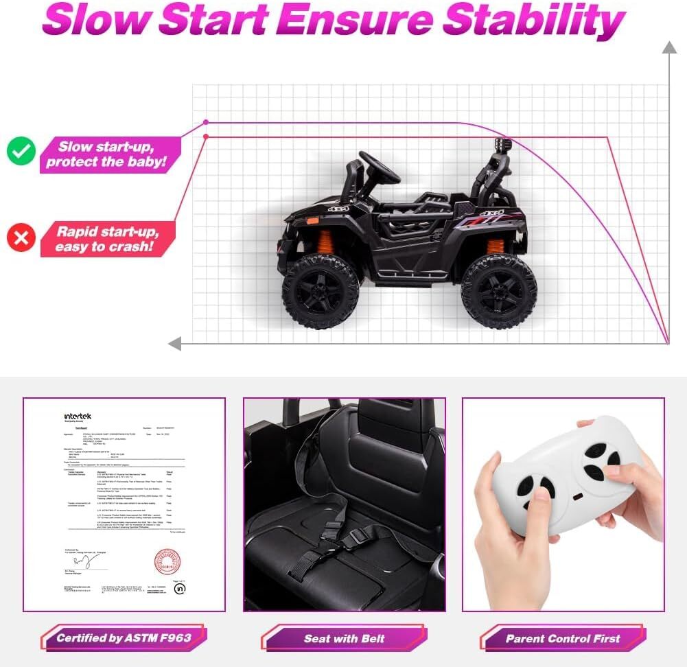 - Parental Remote Control: Speed limiter and easy maneuvering to ensure safe play at all times