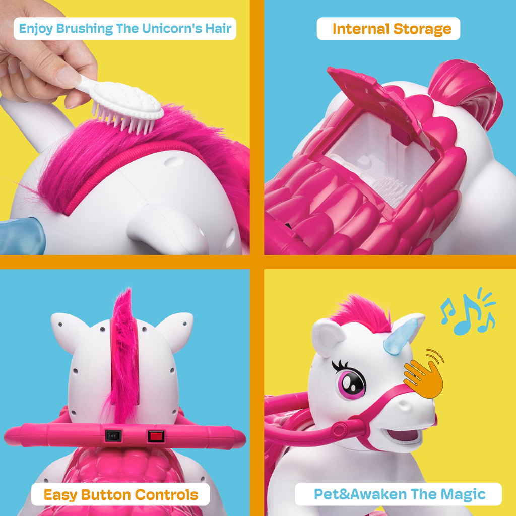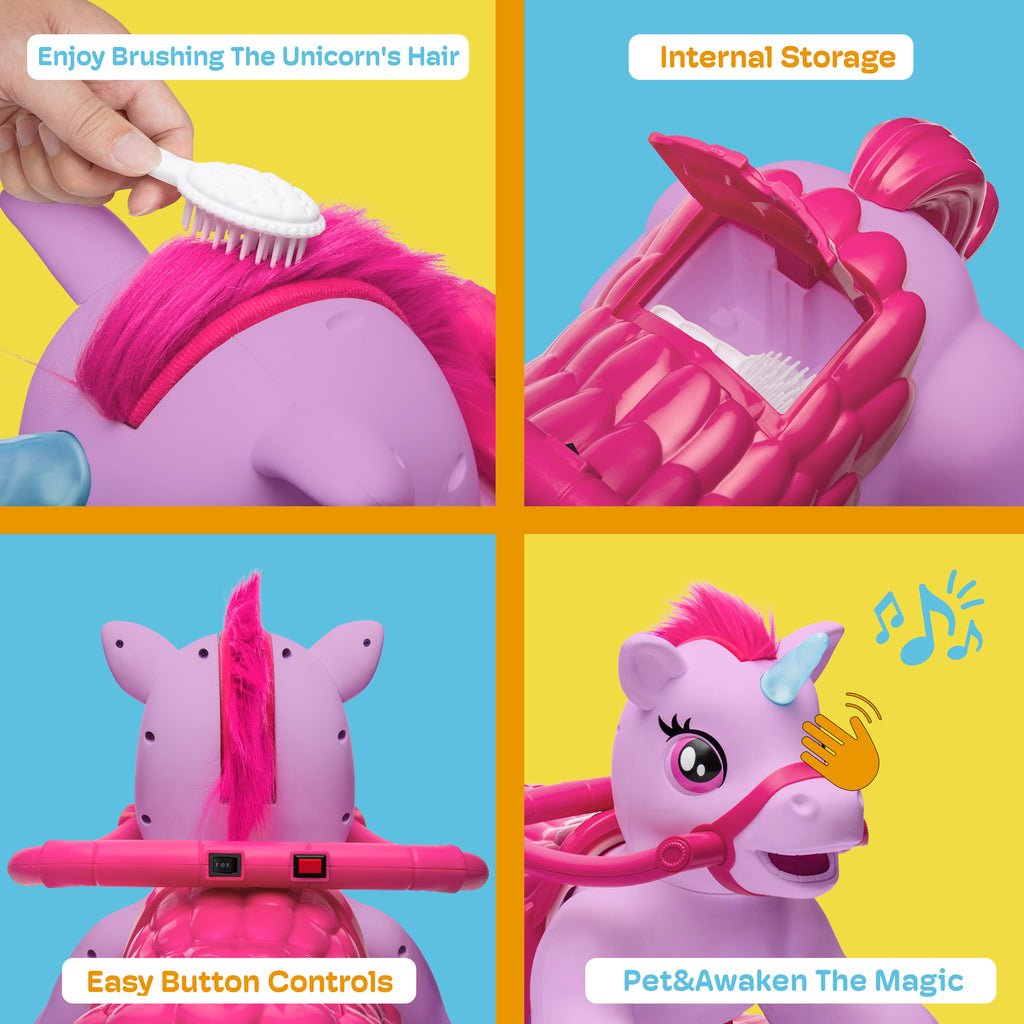 - Interactive Fun: Every brush of the brush accessory, feeding of the toy carrot, or gentle tap on the horn triggers cute animal sounds that delight and engage.