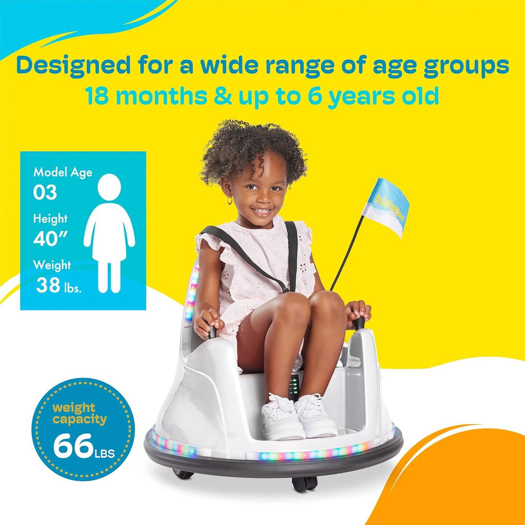 If you’re searching for a standout gift for birthdays, holidays, or just because, this White ride-on bumper car checks every box:
