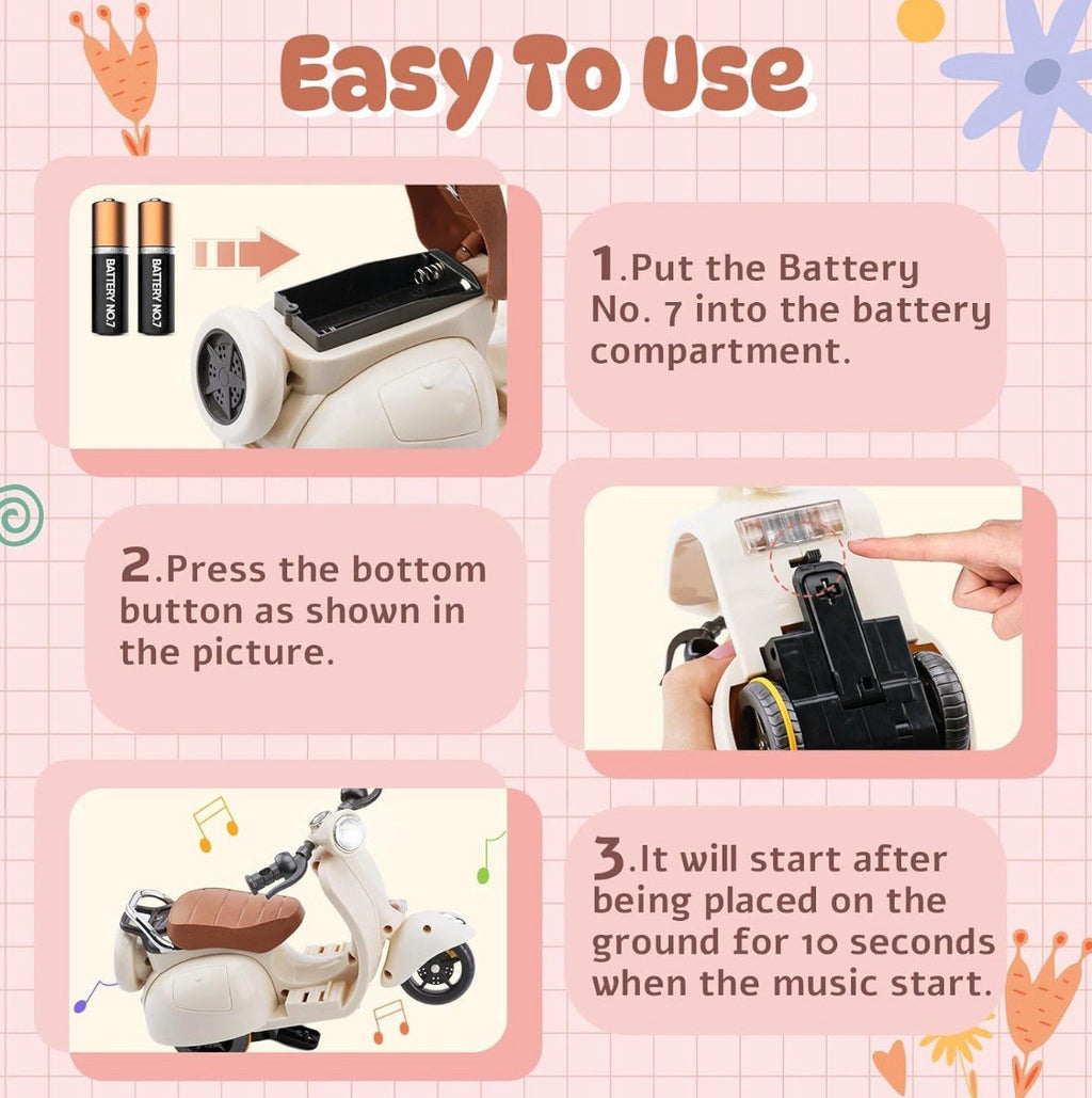 - Battery-Powered Performance: Equipped with a rechargeable battery, this ride-on scooter delivers consistent speed and effortless cruising. No need to worry about constant push-starts—your child can enjoy a powered ride every time.