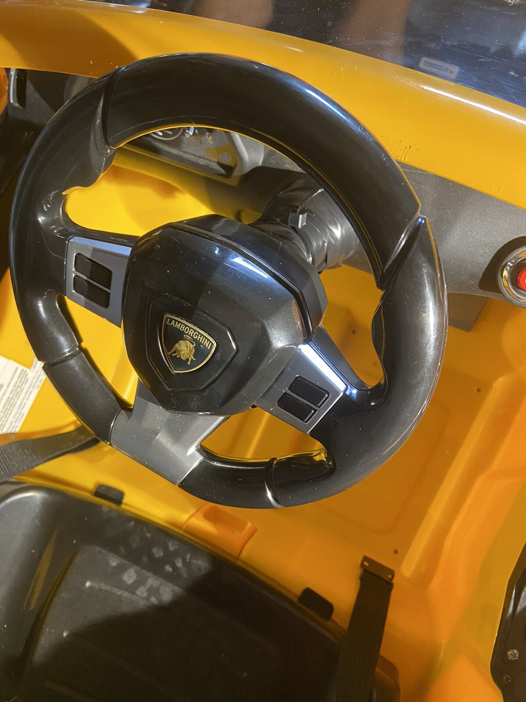 This Lamborghini Aventador LP 700-4 ride-on car is engineered to deliver the ultimate combination of style, comfort, and realism. Let your child feel like a superstar as they slide into the seat, grip the steering wheel, and imagine roaring down imaginary roads. The vibrant finish gleams brilliantly, and although there are a few minor marks, when polished, it looks almost brand new—ready for your child’s next adventure.
