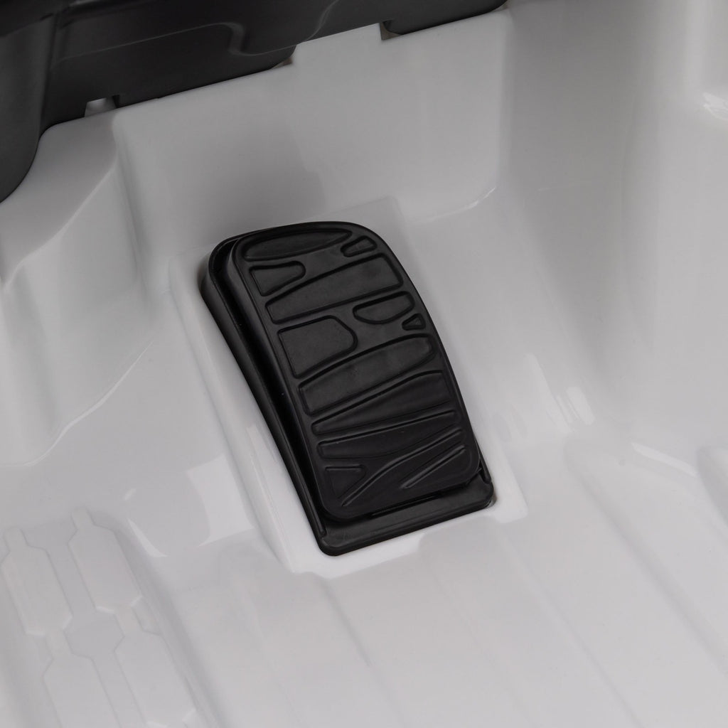 The crisp, clean white finish of this ride-on car looks striking under the sun. Its glossy surface accents every curve and contour, making it a standout piece in any driveway. The sleek White variant pairs perfectly with your child’s bright outfits and adds a modern vibe to outdoor play. Little details like chrome-style mirrors and silver badge decals pop against the white body, giving a premium feel that kids love.