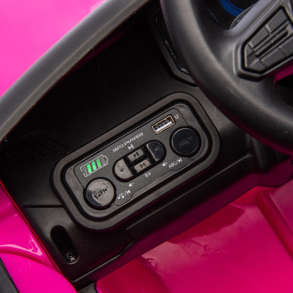 - Multimedia: Bluetooth, USB port, startup engine sounds, horn, and built-in kid-friendly songs