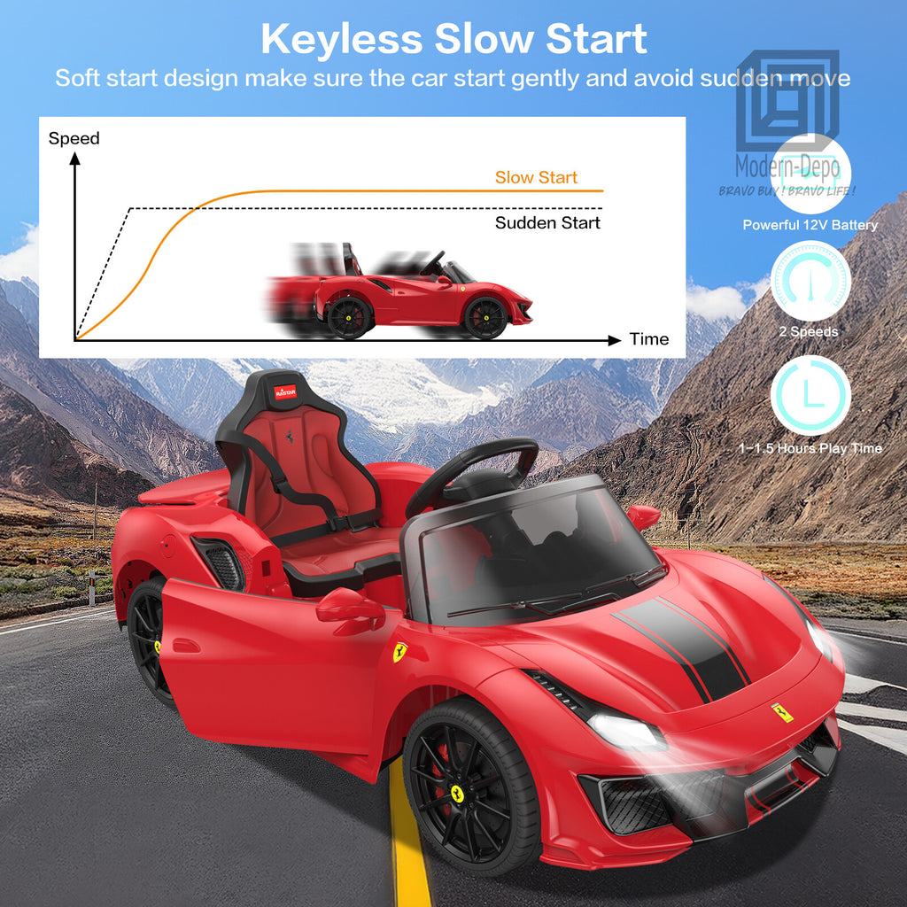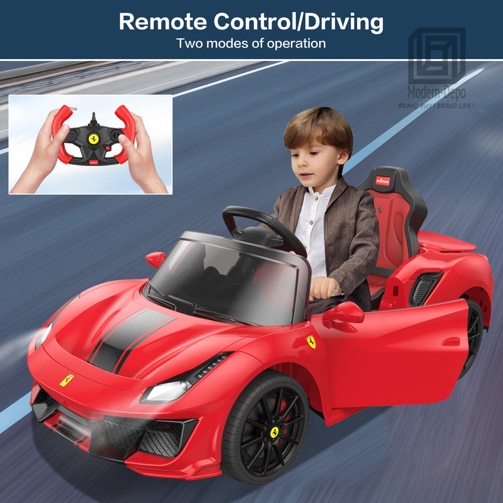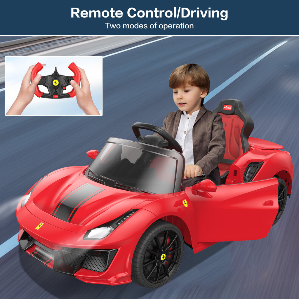Ferrari 488 Pista Spider Ride-On Car with Speaker, Leather Seat, and Brake