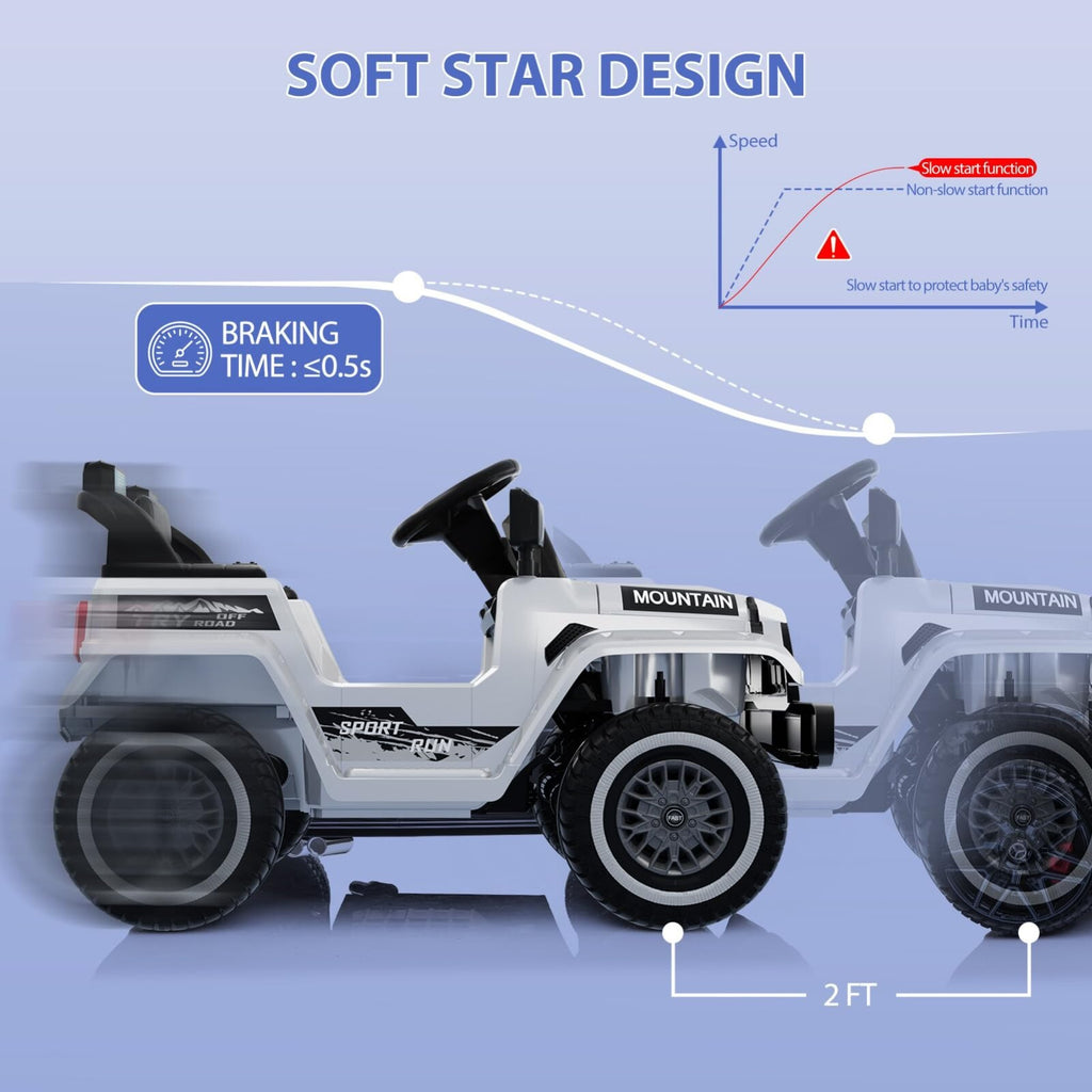 Safety is paramount, and the Hetoy ride-on truck delivers with anti-slip, wear-resistant wheels that provide steady traction across various terrains — whether it’s your hardwood floors, brick paths, or cement driveways. The spring suspension system cushions bumps, ensuring a comfortable and stable ride that feels just like a real truck navigating rough roads. Plus, the innovative soft start technology prevents sudden jerks or stops, easing your child into motion gently and keeping their ride calm and secure.