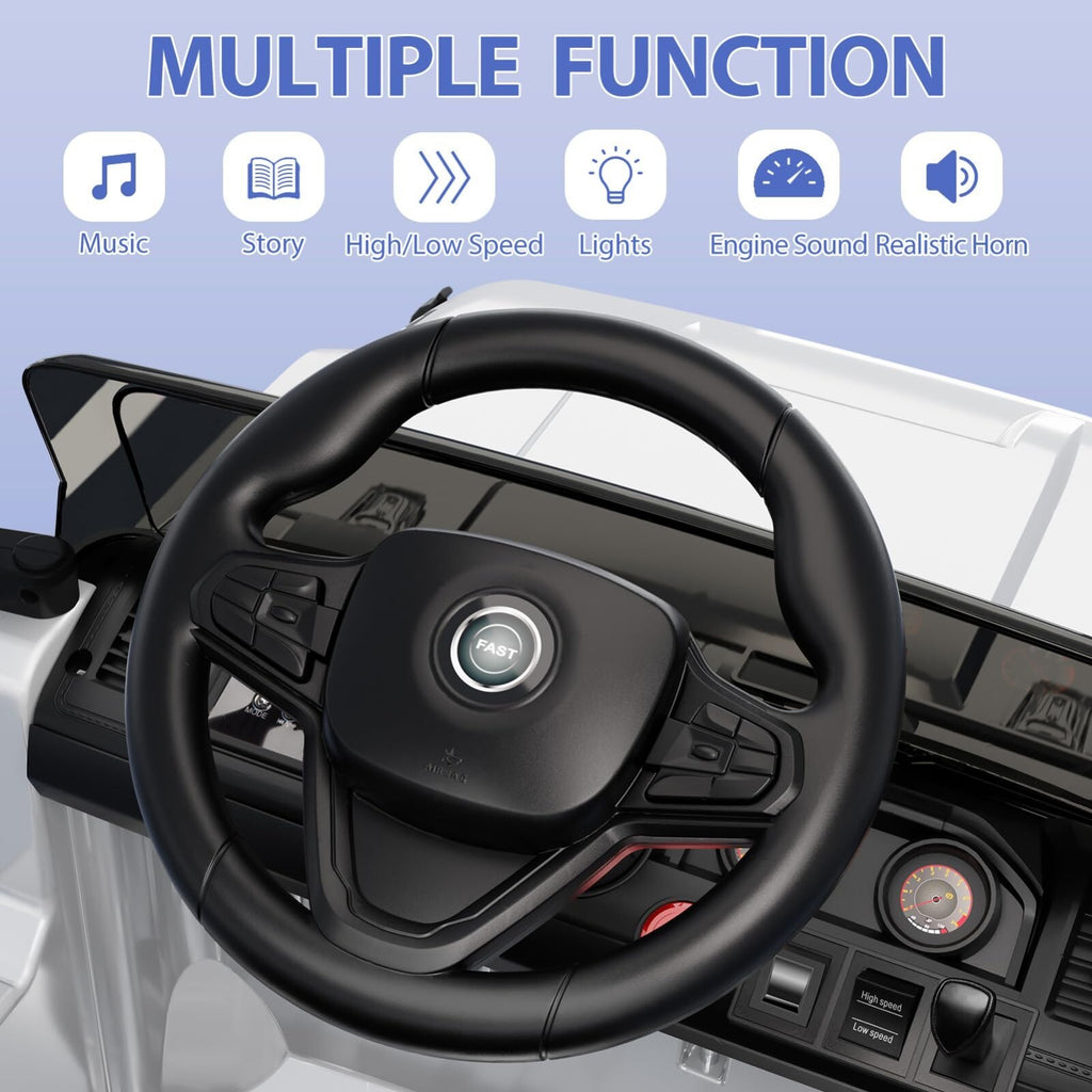 This electric truck is not just about rolling around; it’s an immersive experience packed with features that delight and engage young minds. Offering forward and reverse capabilities alongside three adjustable speeds (ranging from a gentle 1.25 MPH up to a lively 3.1 MPH), kids gain control over their ride, making every journey a unique adventure. The built-in MP3 player with AUX input, USB port, and TF card slot transforms the truck into a mobile concert hall, allowing children to listen to their favorite tunes or stories as they drive. This thoughtful design enriches playtime with early educational content, all while making every ride a blast.