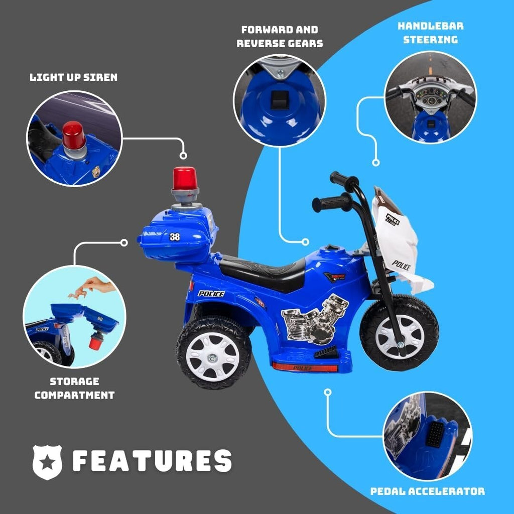 - Safe Maximum Speed of 1.2 mph: The ride-on’s gentle pace ensures your child can navigate smoothly without any risk of going too fast, allowing parents to relax and watch their young officer patrol safely.
