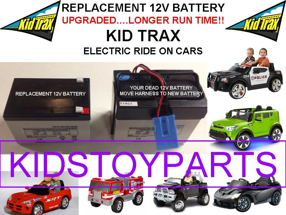 - This battery replaces your dead or dying Kid Trax battery and does not come with the wiring harness or plug; you will use your existing wiring setup.
