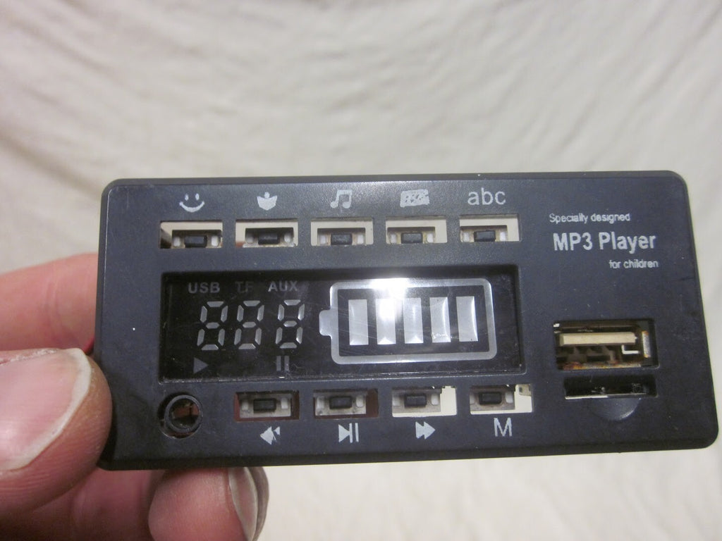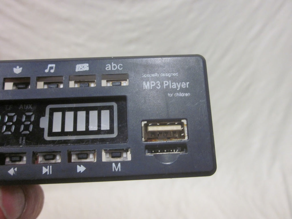 - Replacement Stereo MP3 Player: Galvanize every ride with your child’s favorite tunes. Although the nine button covers are missing, the MP3 player still lets them plug in a flash drive or smart device and jam out to their personal soundtrack. Music adds an extra layer of delight to every adventure.