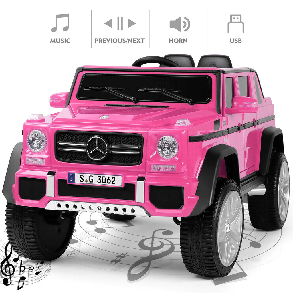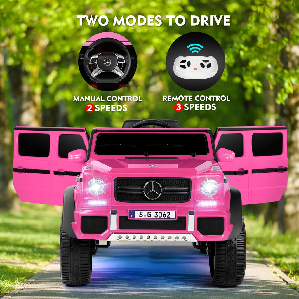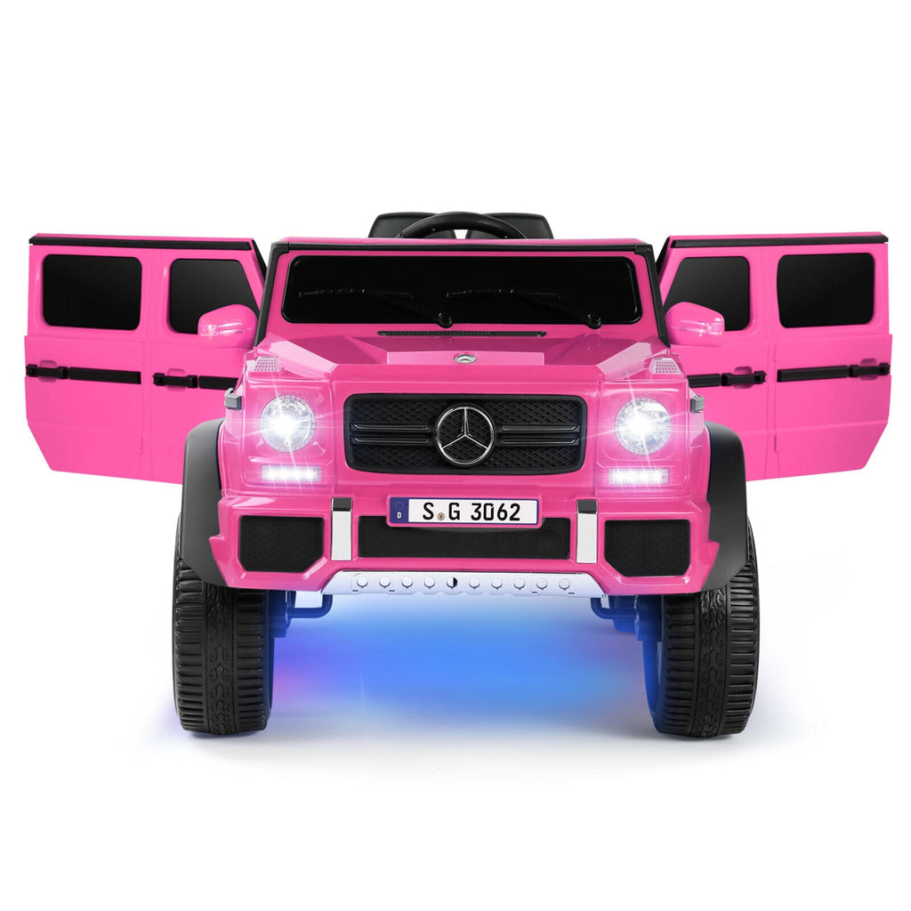 Mercedes-Benz G Wagon 12V Electric Kids Pink Ride On Car with LED Lights, Music, and Remote Control - Pink