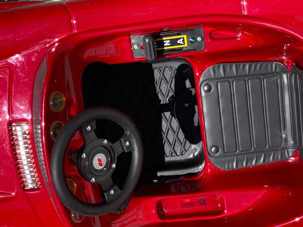 Crafted by TT Toys in Italy, a name synonymous with quality and craftsmanship, this ride-on car is a dazzling red with a sleek black interior, complemented by authentic badges that capture the spirit of the original 300SL Roadster. Unlike pedal cars that rely on little legs, this battery-powered marvel offers effortless driving excitement, putting your child in control with ease and confidence.