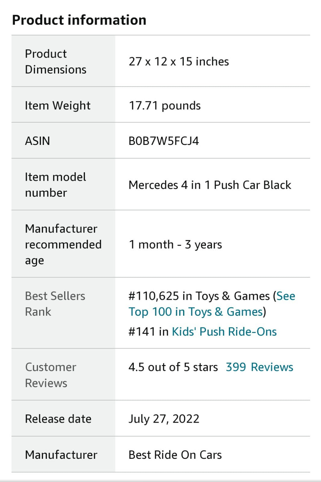 - Multi-functional 4 in 1 design: rocker, ride-on, push car, and walker modes