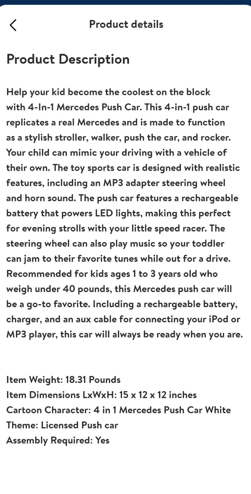Whether you’re searching for an unforgettable birthday present or a holiday surprise, the Mercedes-Benz 4 in 1 Ride-On is a fantastic choice for families who want to inspire creativity, movement, and fun. Its timeless design and adaptability mean it will remain a cherished toy throughout early childhood, making every ride a joyful adventure.
