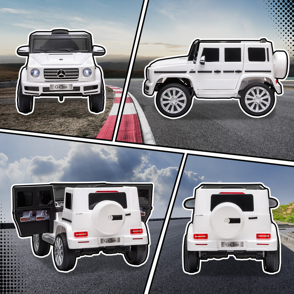 Imagine the thrill in your child’s eyes as they slide into the plush seat of their very own Mercedes Benz G500 ride-on truck. This official licensed ride-on truck, dressed in pristine white, brings the full majesty of a luxury off-roader down to kid-size. With realistic headlights, working dashboard lights, and that unmistakable Mercedes grille, this mini truck is more than a toy—it’s an invitation to adventure.