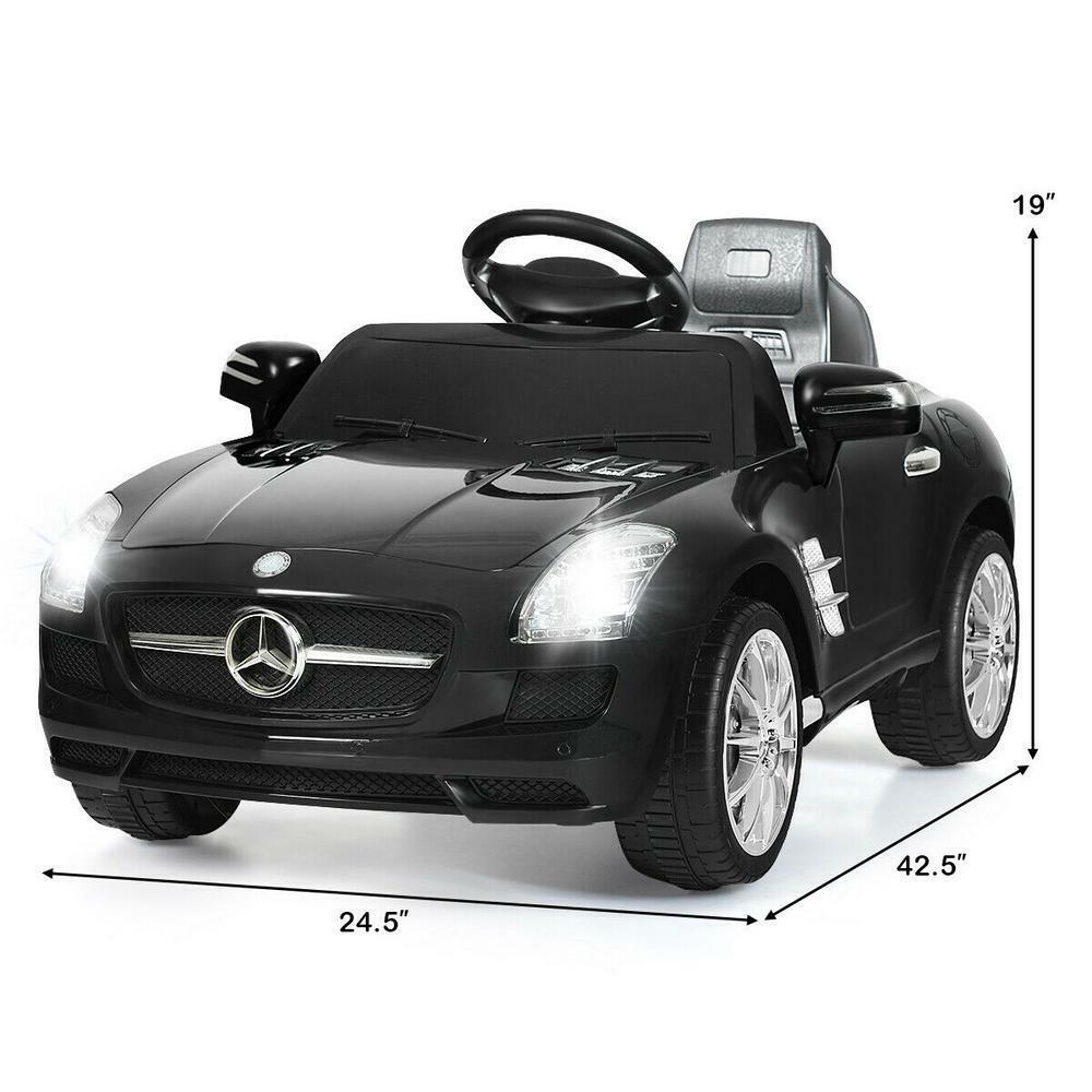 The Mercedes Benz SLS Kids Ride On Car with 2.4G Remote Control in Black is the perfect toy car to keep your kids entertained and active. With its realistic and cool appearance, this ride-on car will capture your kids' attention instantly. It comes with two modes of operation - you can control the car using the 2.4G remote control or let your kids operate it themselves. The car is designed to provide a comfortable and secure driving experience, with a soft seat and safety belt. This Mercedes Benz toy car is an ideal gift for your kids, guaranteeing hours of happy driving adventures.