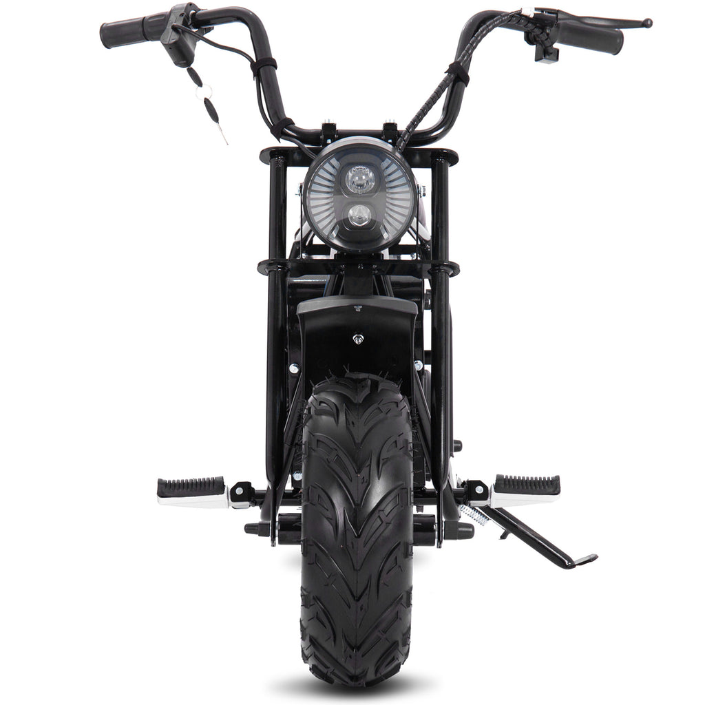 Designed to conquer a variety of terrains, the MotoTec mini bike rolls on massive 145/70-6 knobby tires that sink gently into dirt and grip loose gravel. A ride-on this tough stands up to your boldest adventures, soaking up bumps with rigid suspension and maintaining traction when the trail gets rocky. With a minimum ground clearance of 6 inches and a wheelbase of 42 inches, the bike strikes the perfect balance between nimble handling and stable riding, letting you weave around obstacles or carve wide turns with complete confidence. And with a maximum rider weight of 185 pounds, it’s perfect for growing kids and teens eager for more speed and power.