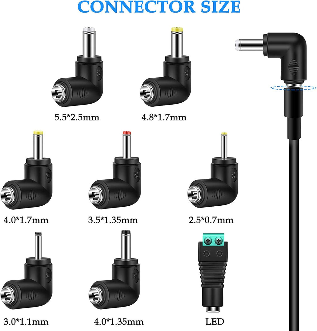 - Eight Adapter Tips: Includes 5.5 x 2.5 mm, 4.8 x 1.7 mm, 4.0 x 1.7 mm, 4.0 x 1.35 mm, 3.5 x 1.35 mm, 3.0 x 1.1 mm, 2.5 x 0.7 mm, and an LED terminal—covering a huge variety of ride-on cars and electric baby vehicles.
